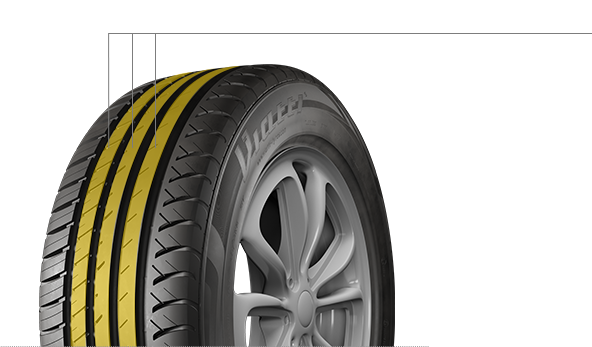 Технология Hydro Safe S – четыре широких кольцевых канавки эффективно выводят воду из пятна контакта. Угол наклона стенок канавок оптимально рассчитан для сопротивления сдвигу блоков рисунка при маневрировании автомобиля и обеспечивает безопасность активного вождения как на сухой, так и на влажной дорожной поверхности.